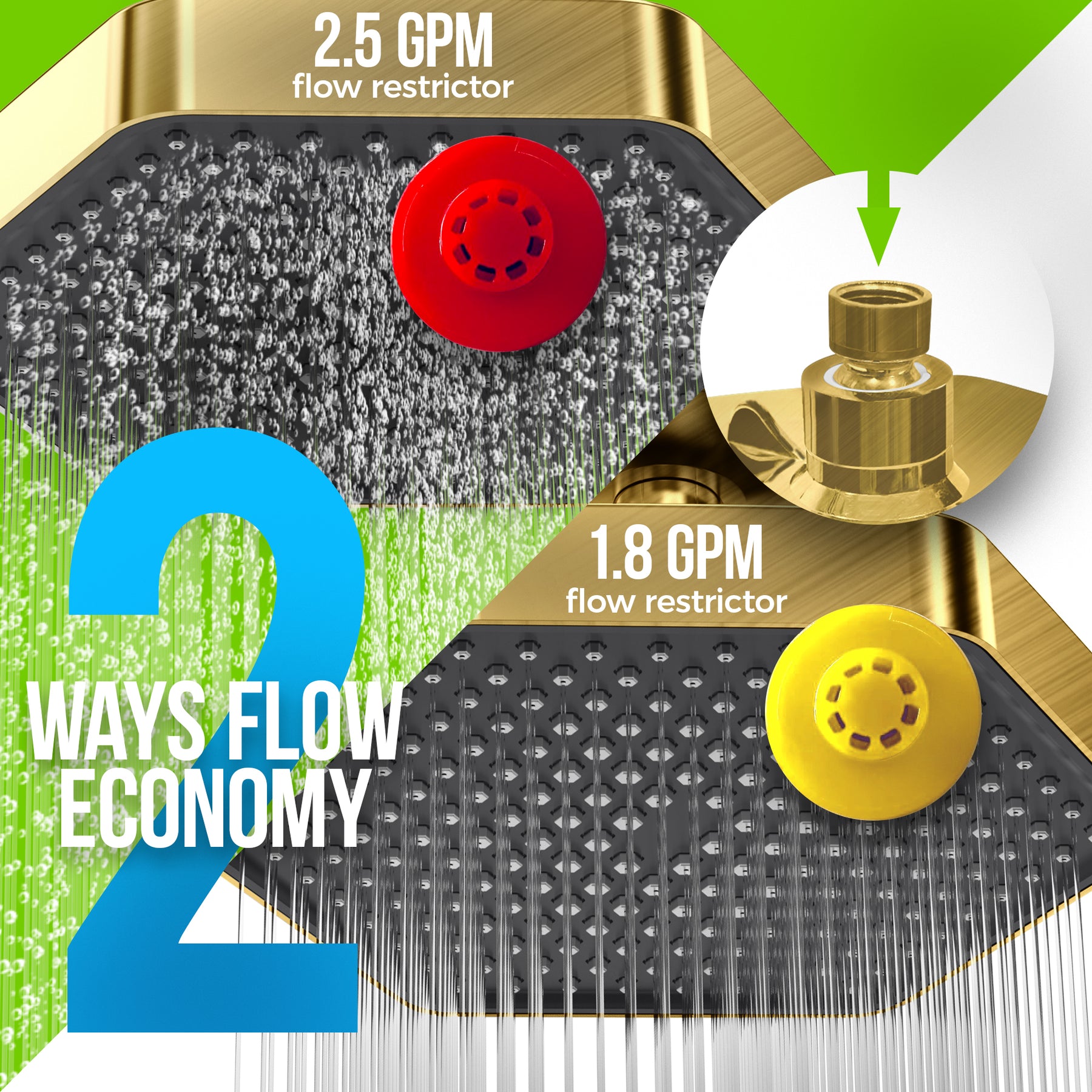 Package includes (1) showerhead, (1) 1.8 GPM flow restrictor, (1) 2.5 GPM flow restrictor, and (1) filter cartridge.