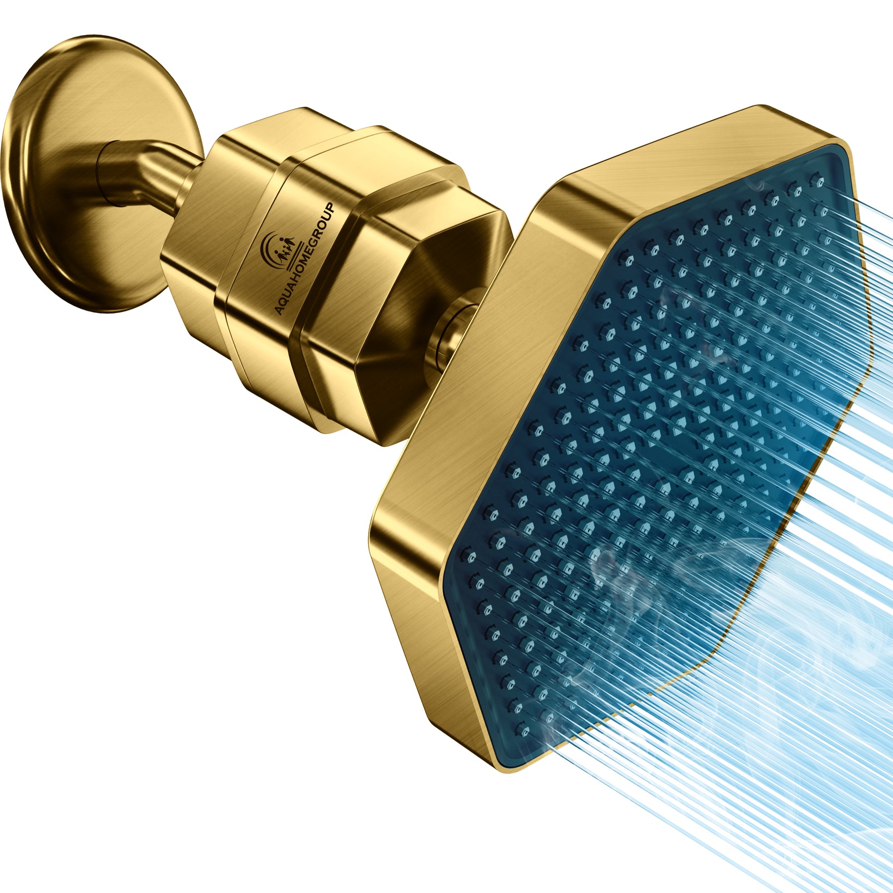 AquaHomeGroup High Pressure Rain Filtered Shower Head Brushed Gold with Filter, Vitamin C E A - SPA Effect
